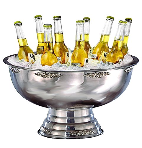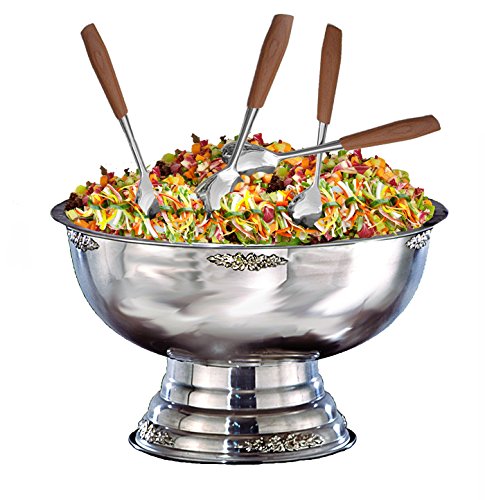 Apex Fountains All Stainless Steel Commercial Punch/Salad Bowl with Pedestal Base and Silver Accents