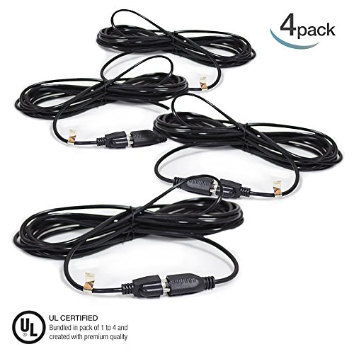 eTopLighting |4-Pack| 3 Prong, Indoor/Outdoor, 20ft Power Extender Cord Cable, Outlet Saver, UL Listed, Adapter, 18AWG [0.824mm²] 300V, APL1744