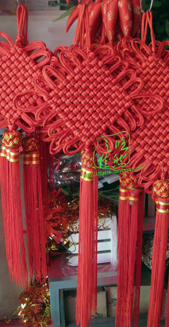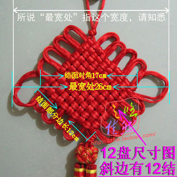 Junction: refers to the cross-woven Chinese knot tilted section called junction, junction section side 12cm, slightly wider than the palm side of these four fingers. Diagonal junction portion is about 17cm.