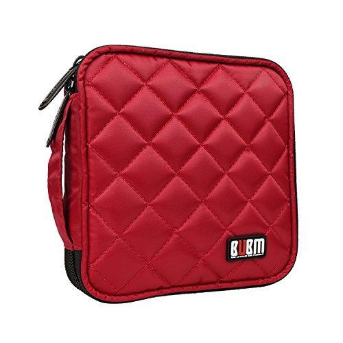 -. Feature : 230D Space Twill, this material is wipeable, the quilted exterior offers some padding to protect dvds from damage if it's dropped / Comes with handle, can hold 32 CD/DVD, organization system designed to hold items firmly in place, endless configurations perfect companion for your laptop bag or travel case / Beautiful color. The CD/DVD inserts are sturdy, not flimsy or easily torn. The CDs fit snugly in each slot and do not fall out when the wallet is turned upside down / It is not flimsy like some of the cheaper cases, the zipper works well, excellent stitching / BUBM focuses on electronic accoessories organizer system for 8 years