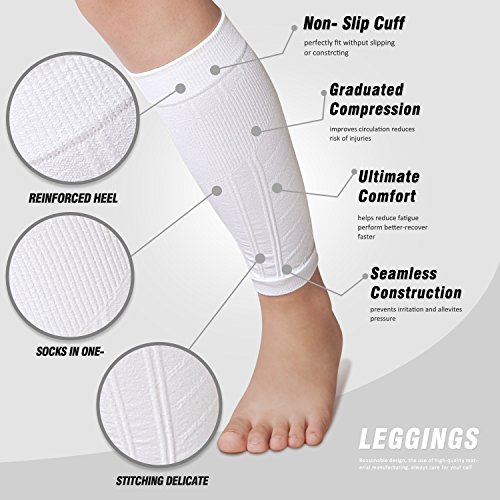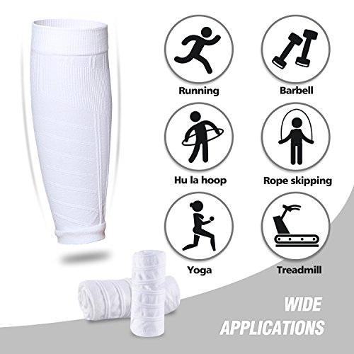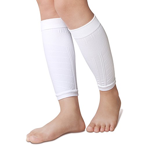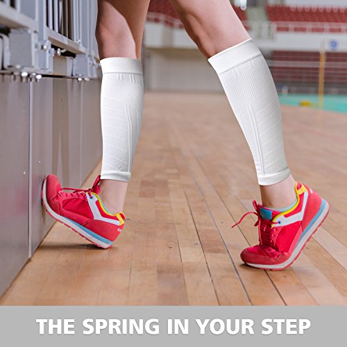 Calf Compression Sleeve for Men & Women (1 Pair), BULESK Compression Leg Sleeves for Shin Splint & Calf Pain Relief, Running, Traveling, Nurse, Varicose Veins, Cramps, Cycling, Recovery (White)