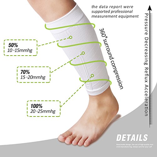 - MULTI-PURPOSE: Graduated Compression of 25-30mmHg is best for painful or aching legs. Prevent deep vein thrombosis, blood clots, and varicose veins. Protect from minor scratches and knocks, reduce the risk of injury. Relief from aches and swelling. Provide muscle support, promote faster muscle warm up, and reduce calf cramps. Reduce fatigue. Reduce the lactic acid's creation and accumulation.