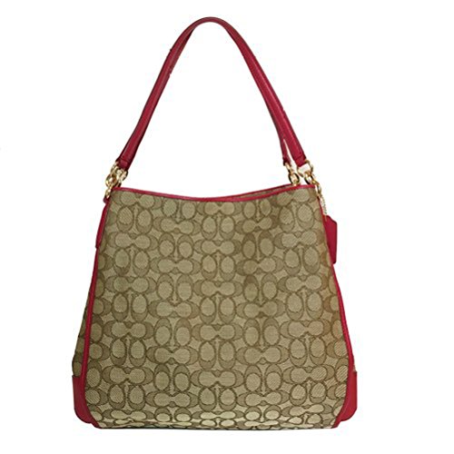 COACH OUTLINE SIGNATURE PHOEBE SHOULDER BAG 36424 KHAKI CLASSIC RED