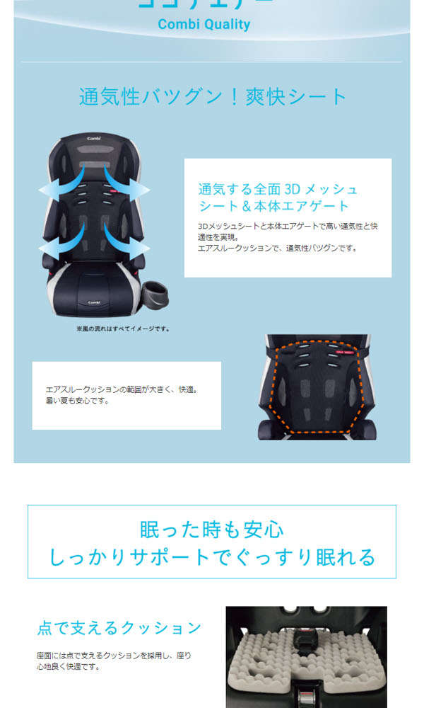 ●3Dメッシュシートと本体エアゲートで高い通気性と快適性を実現。エアスルークッションで、通気性バツグンです。
