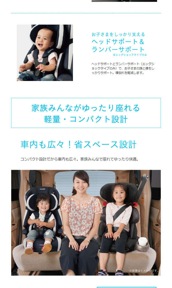●新生児タイプチャイルドシートからの移行がスムーズ! お子さまをしっかりと支えます