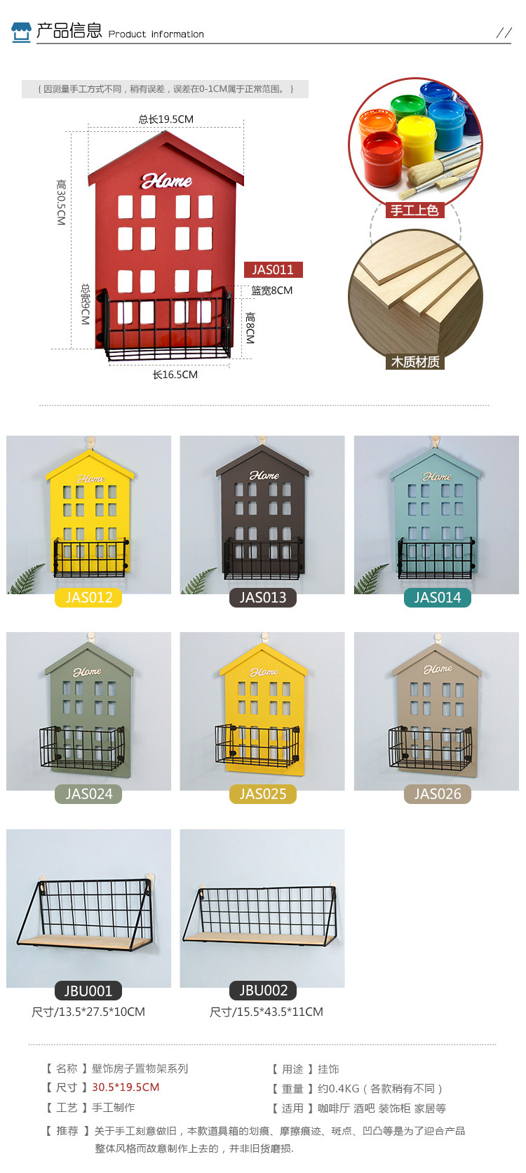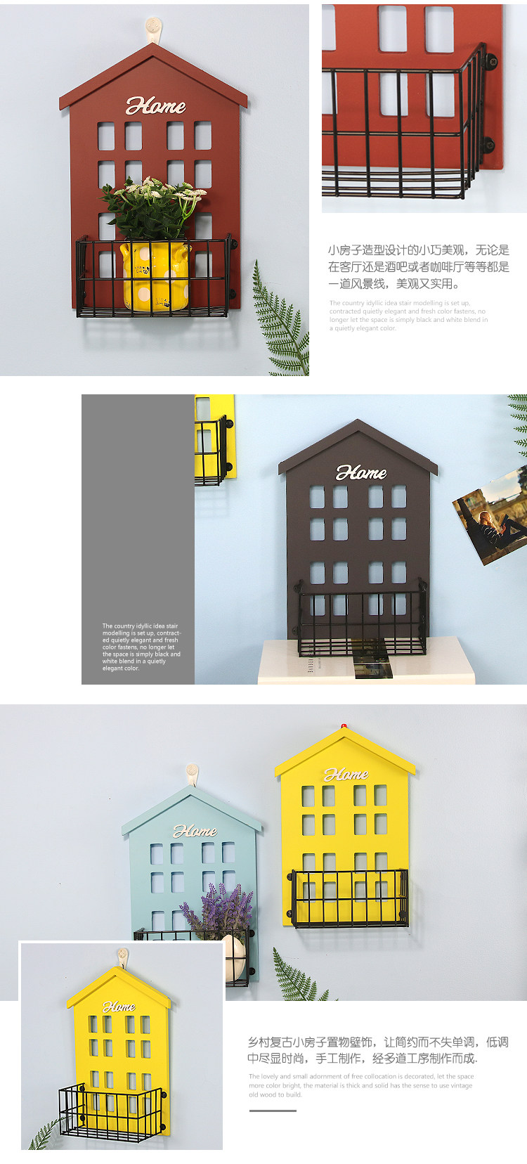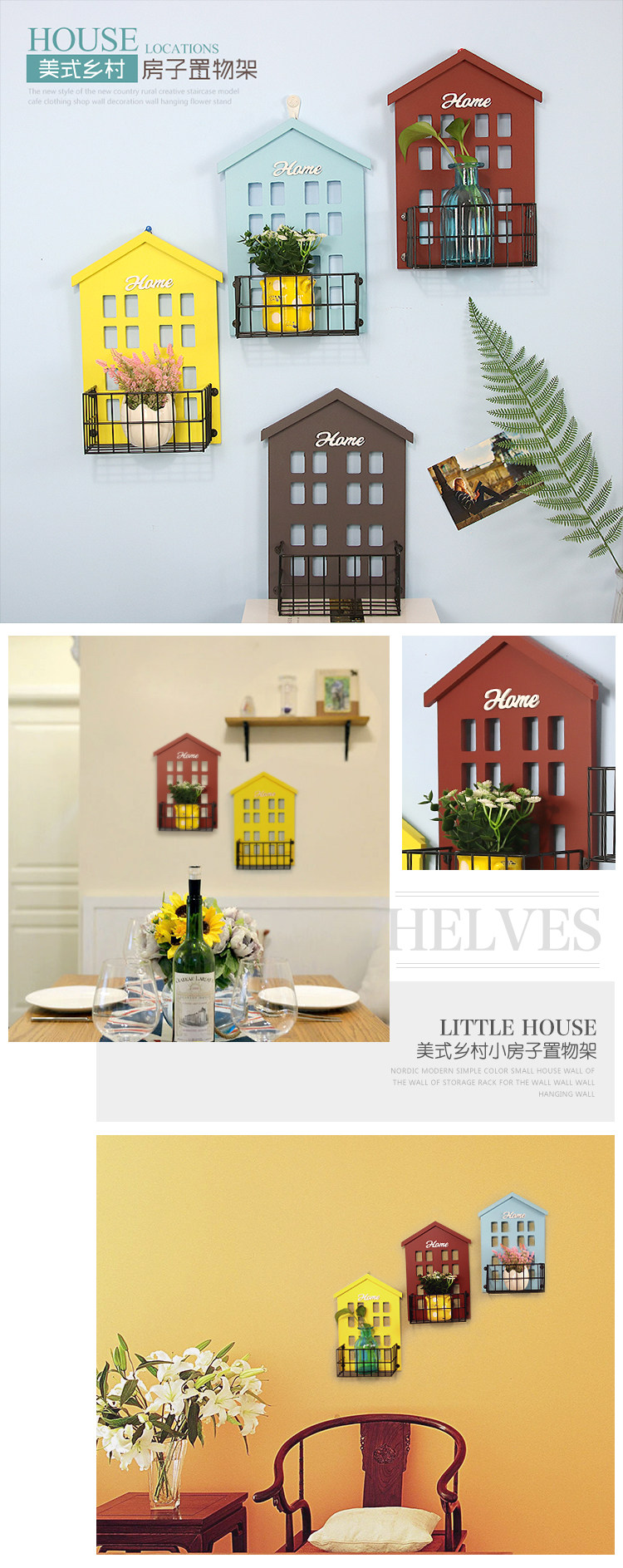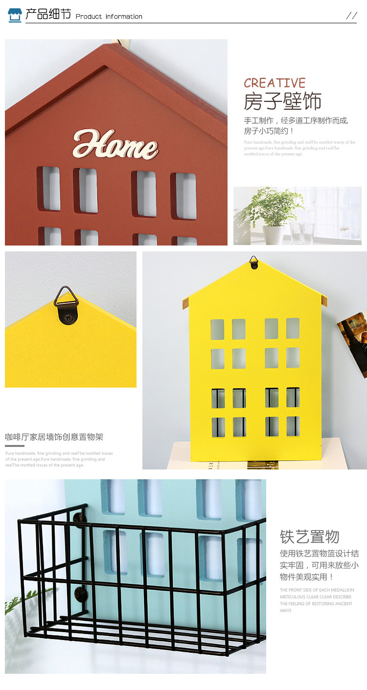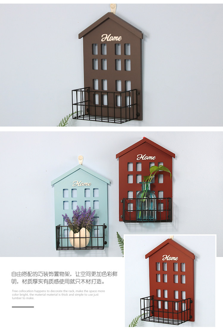 复古美式小房子墙饰置物架 客厅墙面壁挂花架房间收纳 墙上装饰品