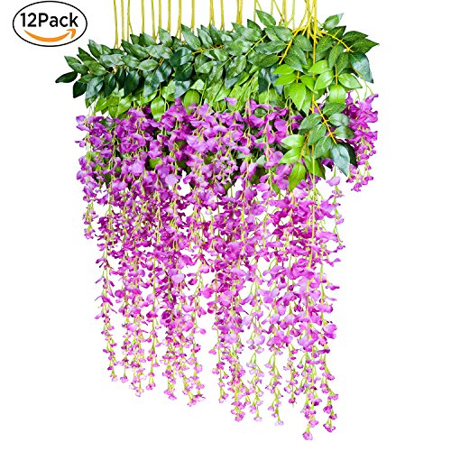 Package Content: 12x Artificial Flowers Vines,Size of each fake flower vine: About 3.6 Feet in length.per artificial wisteria with 3 branches,1 longer string 17.71",1 shorter strings 9.84",1 medium strings 13.77"