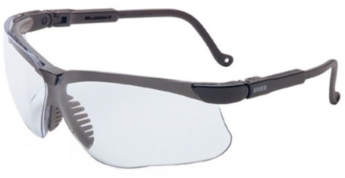 Combines safety and comfort. The dual 9-base unilens offers peripheral vision and protection, while the soft, flexible fingers adjust and conform to most nasal profiles. Impact to the forehead is minimized by the soft elastomer brow. The scratch- and impact-resistant hardcoat is ideal for individuals working in labor-intensive environments. Style: Wraparound Frame Color: Black Frame Material: Plastic Lens Material: Polycarbonate.Feature