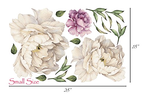 Peony Flowers Vintage Bouquet Wall Decal Sticker Peel and Stick Floral Art Decor Removable and Reusable #3033 (Small, White Bloom - 3 Flowers)