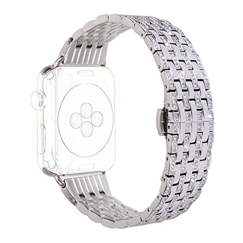 -. Feature : PERFECT FIT - The watch band fit for Apple Watch/ Apple Watch Sport/ Apple Watch Edition Series 3/ Series 2/ Series 1 (38mm Only). Create the perfect watch band for any occasion, a collection designed with premium stainless steel and diamond materials for style that stands the test of time. / ADJUSTABLE SIZE - It's very easy to adjust to a range of sizes to suit your wrist. this replacement bands maximum length is 16.5cm/ 6.5 inch (NOT include the length of the dial). Adopts unique folding clasp, which can be firmly wore and easy to take off. Band comes with metal connector, which make you able to change the style without any tool. / FOLD-OVER CLASP DESIGN - Refined double button butterfly clasp, The metal clasp firmly closed, prevent loosen automatically, safe and beautiful, and very easy to adjust to a range of sizes to suit your wrist. Up to 4-6 links can be removed, the band comes with link removal tool which makes you possible to adjust the band length to your wrist. / EXQUISITE CRAFTSMANSHIP - High-tech surface finish watch strap, after 4 precise polishing processes, the surface texture feels exquisite, with charming luster. All watch strap passed pulling force test, professionally made and constructed, quality assured, more soft and comfortable. / ERGONOMIC & SECURE - Durable band comes with Apple Watch lugs on both ends, which locks onto your Apple Watch band interface precisely and securely. Easy and direct installation and removal.