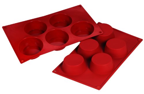-. Feature : Flexible and versatile; Safe to use in the freezer, microwave and oven / Durable enough to handle the daily use of commercial kitchens / Use it for baking, mousse, gelatin, ice sculptures, chocolate, craft applications and many more / Sealed with a high-temperature process which creates a natural non-stick surface / Temperature resistance to 550-Degree; Muffin, 4.57-ounce, 3.19-inch by 1.26-inch deep, 5 Cavities
