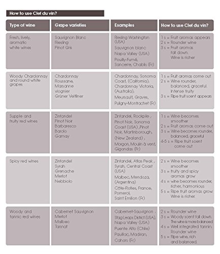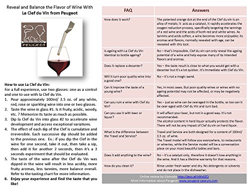 Studio : PSP USA, LLC Peugeot Publisher : PSP USA, LLC Peugeot Binding : Kitchen Product Description The Clef du Vin enables you to instantly reveal the qualities of a wine. It works effectively on all types of wine: white sparkling, rose, red and naturally sweet wine With the Clef du Vin, you can adjust the balance of a wine to your personal taste and enjoy it straight away. Accurately gauge how your wines will develop so that you can manage your wine cellar efficiently. 0