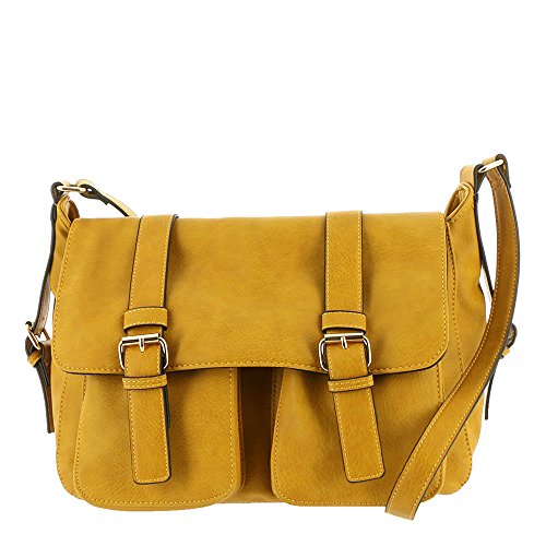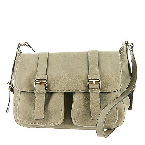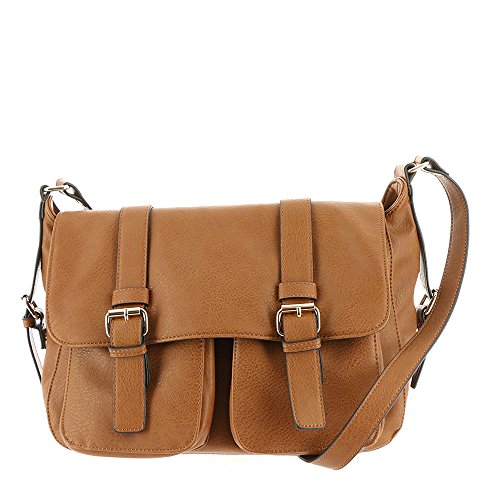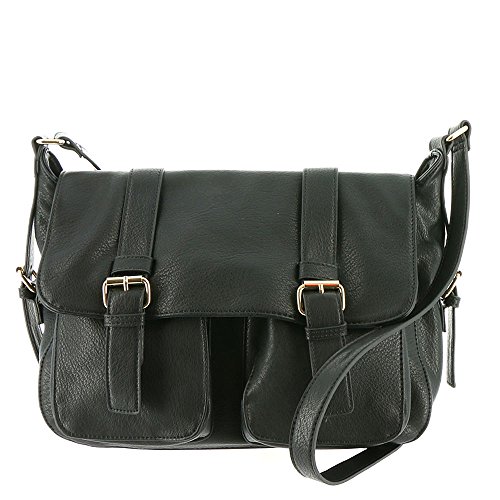 Product Description *Pebbled synthetic material *Top flap has dual magnetic snap closures *Flap opens to access 2 front pouch pockets and a zippered main compartment *Back outside zip pocket *Adjustable shoulder strap *17"Lx6"Dx11"H 0