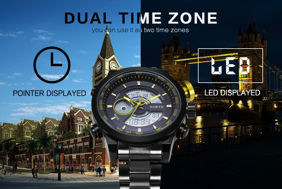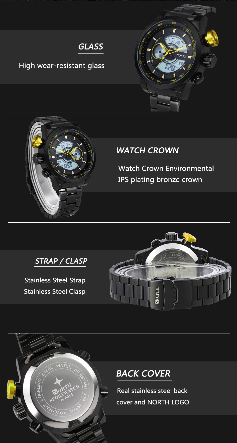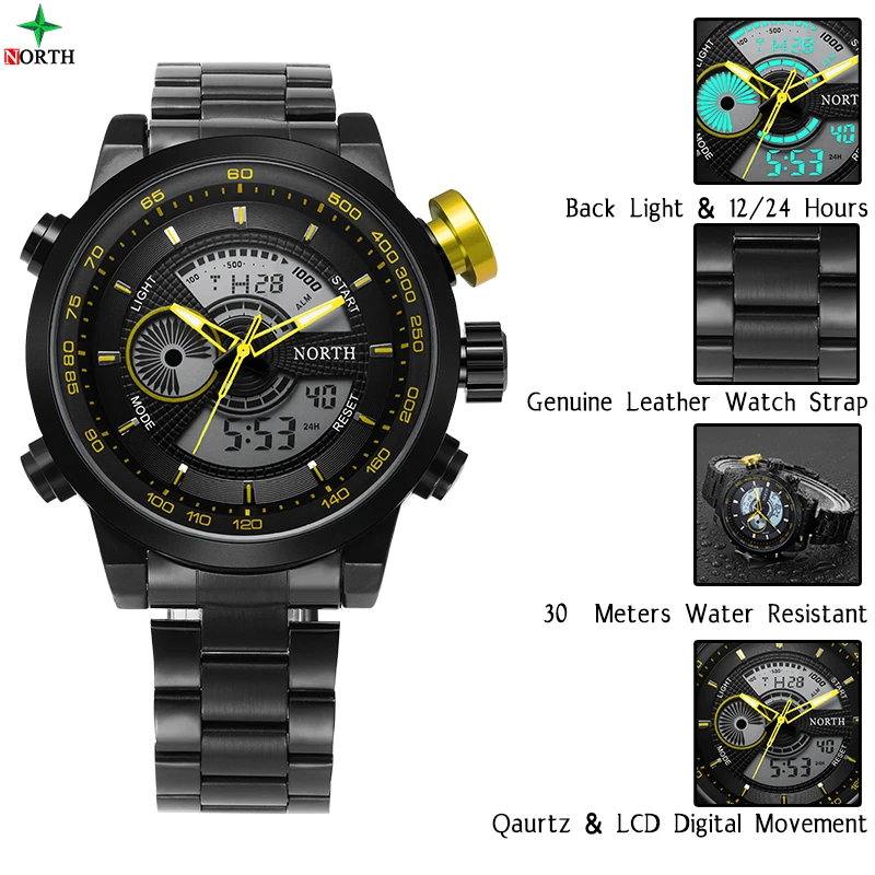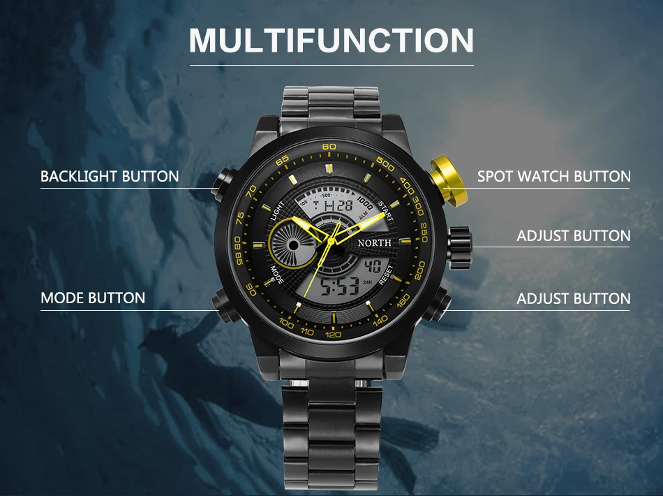 Feature:Water Resistant,LED display,Complete Calendar,Week Display,Alarm,Luminous Hands