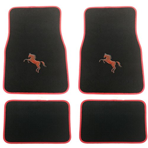 -. Title : 4 Pieces Red Pony Mustang Horse Logo Premium Black Carpet Front & Rear Floor Mats Set Universal