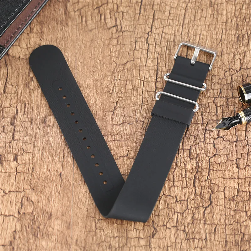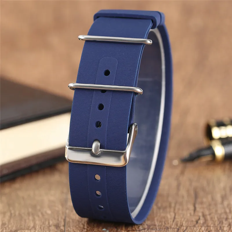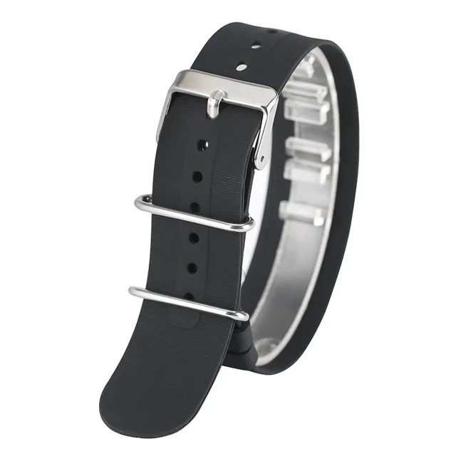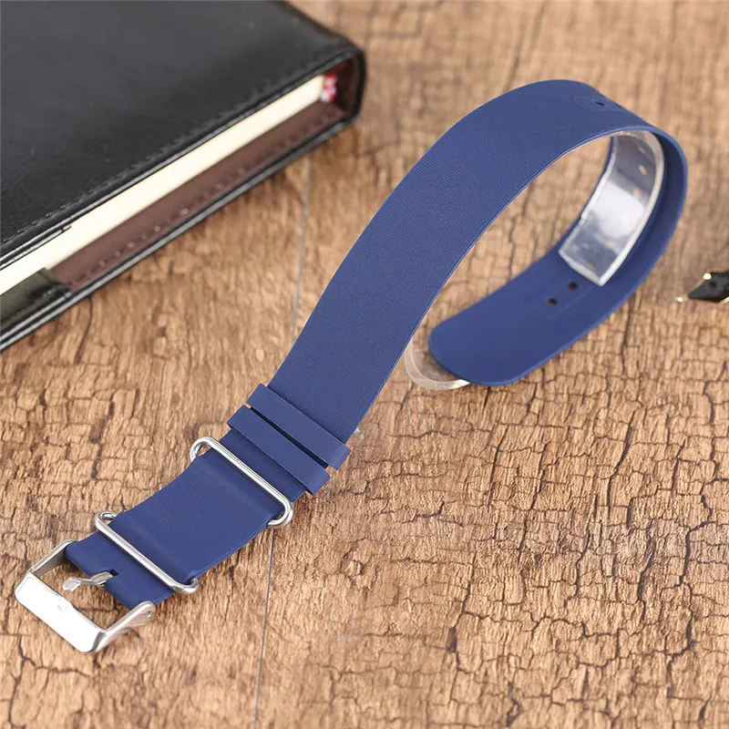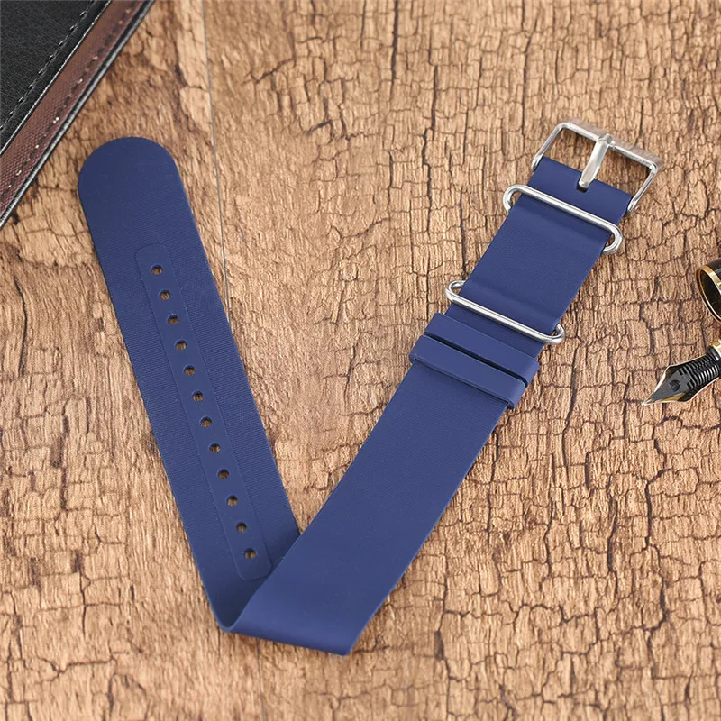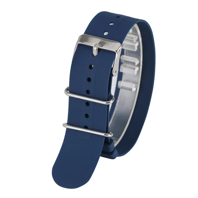 | [해외] 18/20/22 미리메터 남성 군사 부드러운 핀 버클 스트랩 블랙/블루 실리콘 고무 밴드 스포츠 야외 팔찌 교체 시계 |