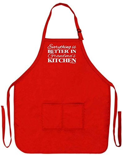 Mother's Day Gift Everything is Better in Grandma's Kitchen Funny Apron for Cooking Baking Crafting Gardening Two Pocket Apron for Grandma or Mom Red
