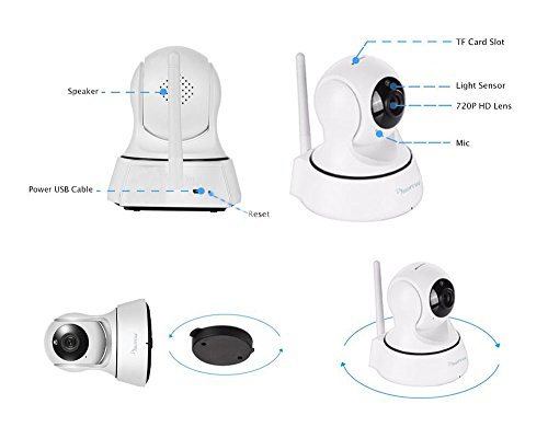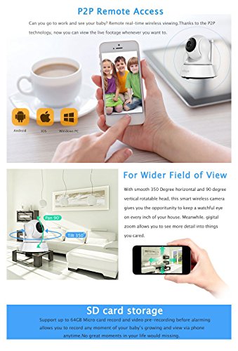 -. Feature : Your World in 720P HD: See everything in beautiful color and super clarity with this HD camera. It helps you keep close eye on your lovely children and pets. All captured by this camera will be presented to you via fluent and stunning videos. Smooth Pan and Tilt Monitoring: Camera head are rotatable with 350°pan and 90°tilt. You can control it via the app and get a sweeping view on every inch of your entire house. No details will ever make them pass even if they tried. / Clear Two-Way Audio: When surveillance videos can`t satisfy you, we provide you real-time two-way audio. Camera is built with microphone and speaker. So you can talk to your kids via your smartphone remotely whenever you want. Real Plug and Play: This smart wire/wireless camera is designed with easy setup feature for do-it-yourself installation. By supporting one-touch Wi-Fi connection function and is needed in the whole network connection process. Not Support 5G Network / P2P Remote Access: Thanks to the convenient P2P technology, now you can view the live footage whenever you want to, just log in the P2P account on the app via your Smartphone (iPhone & Android) or Tablet and start monitoring your house in no time. Motion-Activated Email Alarm: In attempt to make you stay alarmed of all unexpected movements in your house. Motion detection works perfectly with email alert function making sure you are always the first one to get informed when things happen. / FREE 62GB Micro SD Card (Including). Day and Night Monitoring: Equipped with high performance infrared LEDs, this camera provides you clear night vision. And with smart IR-Cut filter, day and night vision becomes crisp and vivid. Stay confident that you`ll always have a reliable eye spy. / Welcome to click on iHome Fusion Storefront for more selection. If you have any question about this product what you have purchased, please feel free to contact us, we try our best to help you.