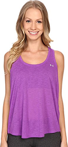 Under Armour Women's UA Tech Slub Flowy Tank Top Deep Orchid/ElementalMetallic Silver Tank Top MD (US 8-10)