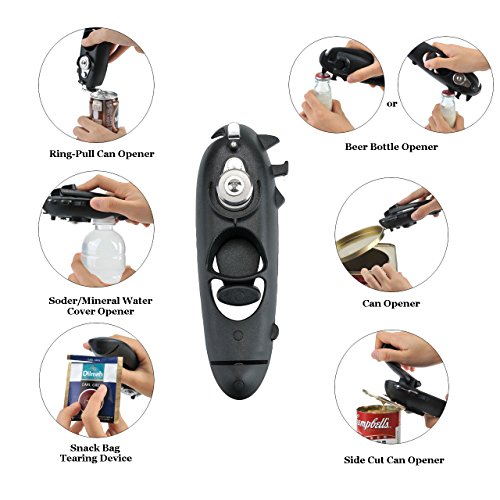 WarmHut's manual can opener combines various functions together, such as can opener lid lifter, beer bottle opener, pop-top can opener, soda mineral water cap opener and snack bags opener. It will be perfect for home and outdoor.