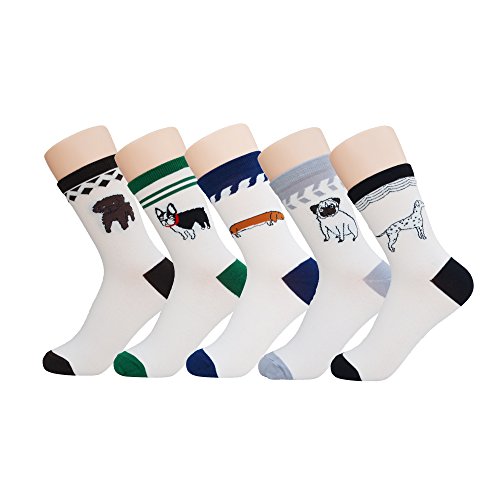 -. Binding : Apparel -. Brand : SoxEra -. Department : mens -. Feature : FOR DOG LOVERS - Lovely dog design: poodle, French bulldog, dachshund, pug and Dalmatian. A great gift for dog lovers. / USAGE SCENARIO - [1] SP.R.Ing, autumn, home, office and every day use. Not suitable for winter and summer outdoor activities. [2] Five vivid bright colors together with five dog posture design can easily match your style and mood. / COMFORTABLE, DURABLE AND NO SLIDING - [1] Not too thick or too thin. [2] Ideal cotton content percentage to provide both comfort and durability. [3] Stay in place, no sliding down and scrunch into your shoe, contribute to the reasonable elastic welt design. / PHYSICAL PARAMETERS - [1] Material: 80% Cotton | 18% Polyester | 1% Spandex | 1% Other Fiber. [2] Wash Notice: Machine washable. No shrinkable. Fastness, but wash the socks with other white color textile is not recommended. / NOTICES FOR SPORTS ENTHUSIAST - These crews are not designed for sports activity. You can look for our professional collections in our brand storefront with key words CoolMax, Shock Absorption, Thermolite, etc. -. ProductGroup : Apparel -. ProductTypeName : SOCKSHOSIERY -. Size : One Size -. Title : SoxEra Cute Dog Design Men's Casual Comfortable Cotton Crew Socks - 5 Pack