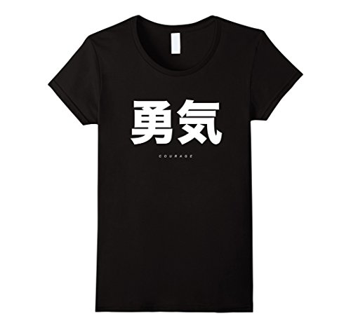 Womens Japanese Words COURAGE Shirt Japan Alphabet Character Kanji Medium Black