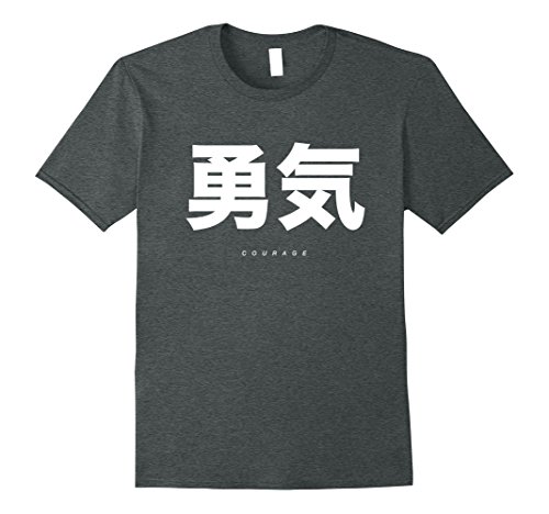 Mens Japanese Words COURAGE Shirt Japan Alphabet Character Kanji Small Dark Heather