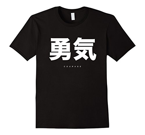 Mens Japanese Words COURAGE Shirt Japan Alphabet Character Kanji Medium Black