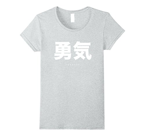 Womens Japanese Words COURAGE Shirt Japan Alphabet Character Kanji Small Heather Grey