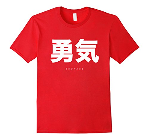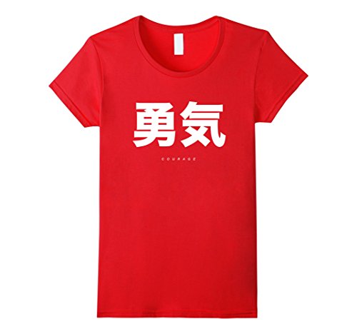 Womens Japanese Words COURAGE Shirt Japan Alphabet Character Kanji Medium Red