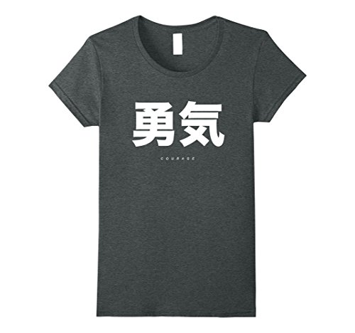Womens Japanese Words COURAGE Shirt Japan Alphabet Character Kanji Medium Dark Heather