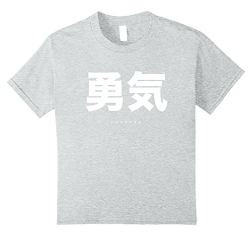 Kids Japanese Words COURAGE Shirt Japan Alphabet Character Kanji 12 Heather Grey