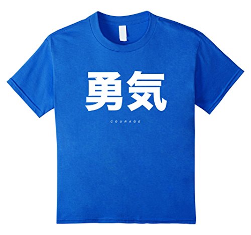 Kids Japanese Words COURAGE Shirt Japan Alphabet Character Kanji 12 Royal Blue