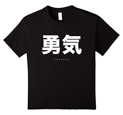 Kids Japanese Words COURAGE Shirt Japan Alphabet Character Kanji 10 Black