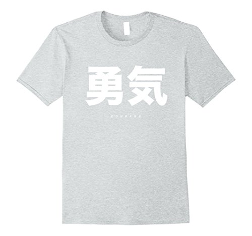 Mens Japanese Words COURAGE Shirt Japan Alphabet Character Kanji Medium Heather Grey
