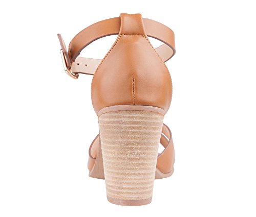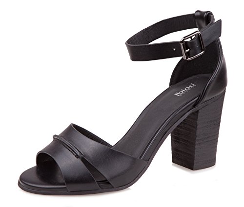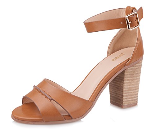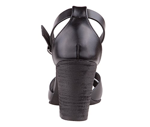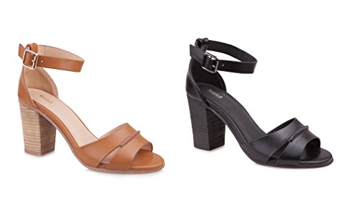 (BALDI)/Women's/Sandals/DIRECT FROM USA/BALDI Women's Middlezoy Black/Tan City High Heel Peep Toe Ankle Strap Sandals Buckle Shoes