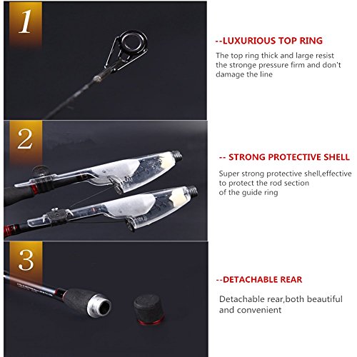 Various sizes and lengths available,one bag included for protection of the rod,guide ring protection cap included,suit for fishing from shore, lake and pond,can cover many species.