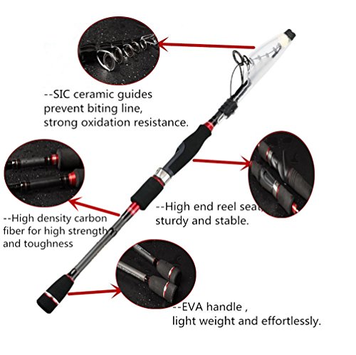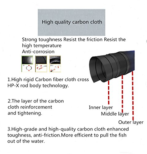 Our fishing rod made of high density 24 ton carbon fiber for high strength and toughness.Light weight,smart and portable.Super hard,durable and lasting.Portable,easy to carry with.Features All parameters are measured manually, allowing a slight error.