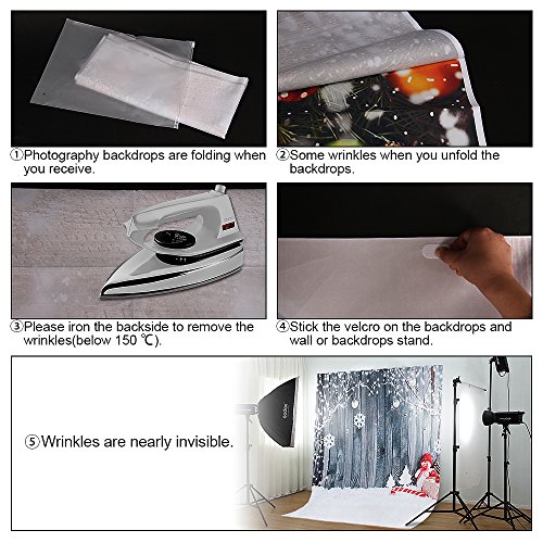 Notes:? 1. The pictorial cloth is not washable. If there have messes just take a damp cloth with water and/or a gentle cleaner(like soap) and wipe clean.? 2. All backdrop will send by folded. Iron the backdrop with low heat on an ironing board. It will be smooth again. 3.The backdrop is absorb light(not reflective,it will be different when taking pictures with photos).? 4. We can customized different size and pictures for you. Please contact us if you need. 0
