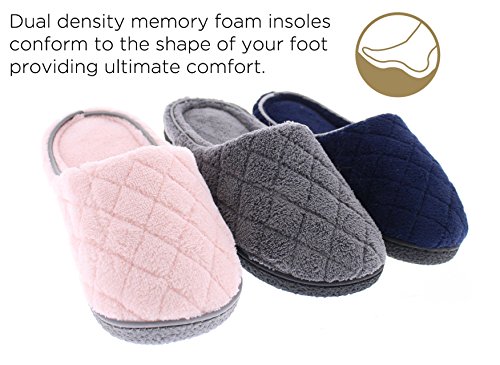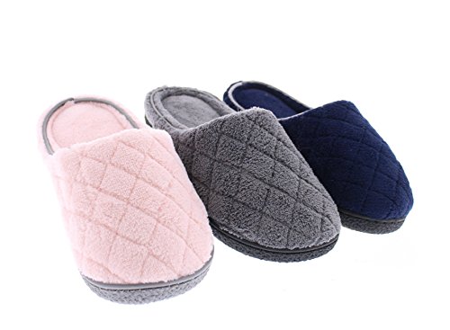 Gold Toe Women's Whitney Soft Quilted Slip On Clog Slipper with Arch Support, Indoor Outdoor House Scuffs Navy L 9 US