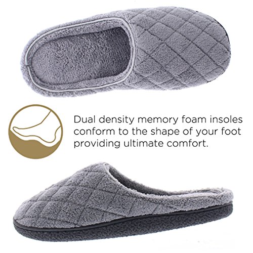 Gold Toe Women's Whitney Soft Quilted Slip On Clog Slipper with Arch Support, Indoor Outdoor House Scuffs Dark Grey XL 10-11 US
