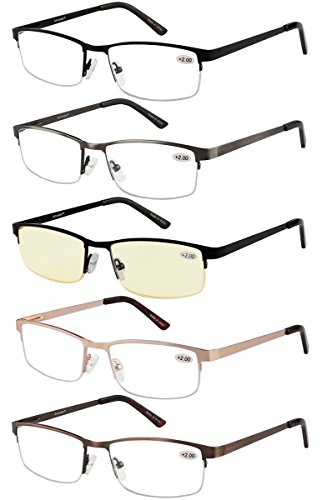 -. Title : Eyecedar Reading Glasses Men 5-Pack Half-Frame SP.R.Ing Hinges Stainless Steel Material Includes Cloth Pouch And Computer Readers