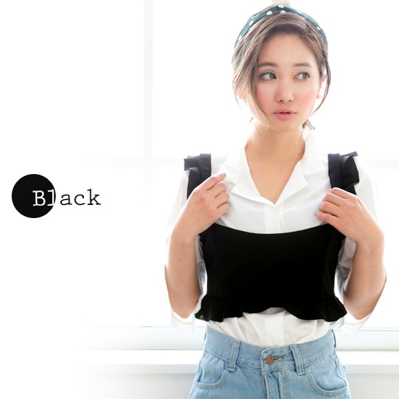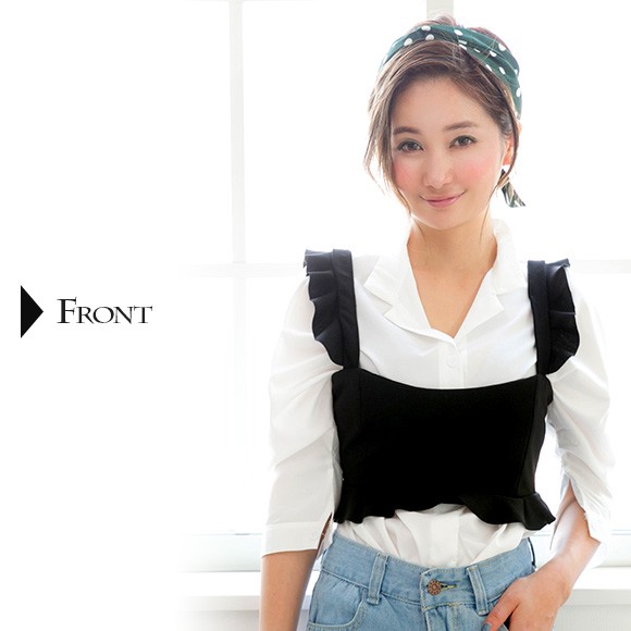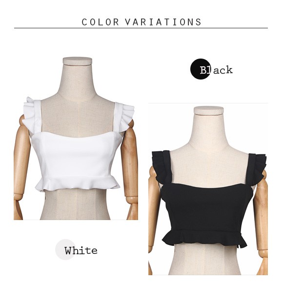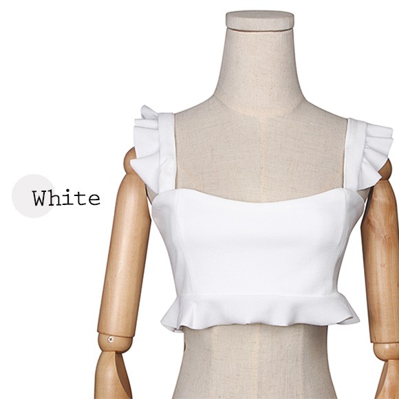 肩と胸下にフリルをあしらったショート丈のフリルビスチェです☆