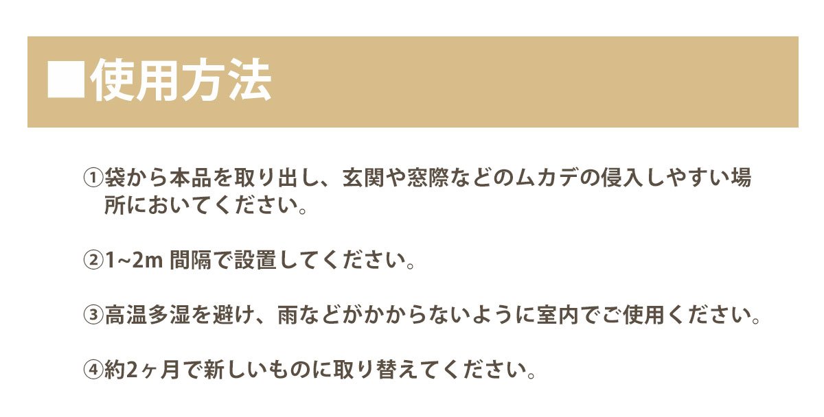 ① Take this product out of the bag and place it in a place prone to penetration of centipedes such as the entrance and the window.