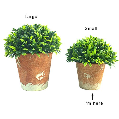 Nattol Mini 5.3 Inches Tall Lifelike Artificial Plant Potted in Rustic Style Whitewashed Paper Pulp Pot for Home Decor (Green,Small)