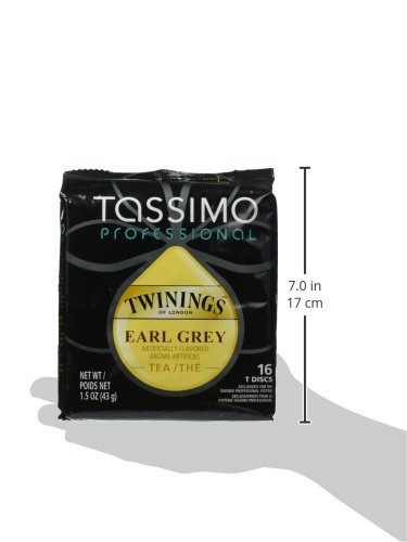 -. Binding : Grocery -. Brand : Tassimo -. EAN : 0043000023822 -. Feature : Twinings Earl Grey Tea is a light and aromatic blend of fine black tea, scented with bergamot, a citrus fruit / Each case includes 5 flow wraps with 80 T DISCS in total; Each individual flow wrap contains 16 Twinings Earl Grey Tea T DISCs that make 16 servings; Each serving is 8 fl Ounce / Tassimo Professional T DISCs are designed exclusively for use with a proprietary away-from-home brewer and can be used to provide a consistent gourmet coffee experience; Tassimo Professional T DISCS will not work in Tassimo home brewers / The Tassimo Professional machine "reads" each encoded T DISC, adjusting the temperature, time, and amount of water to guarantee perfect quality each and every time / Twinings Earl Grey Tea T DISC, Case of 80 T DISC count for the Tassimo Professional Single Cup Brewer. -. Label : Tassimo -. Manufacturer : Tassimo -. MPN : TSMO-TWI-EG -. NumberOfItems : 1 -. PackageQuantity : 1 -. PartNumber : TSMO-TWI-EG -. ProductGroup : Grocery -. ProductTypeName : GROCERY -. PublicationDate : 2014-10-15 -. Publisher : Tassimo -. ReleaseDate : 2014-10-15 -. Size : 1.5 Ounce -. Studio : Tassimo -. Title : Tassimo Professional Twinings Earl Grey Tea, 1.5 Ounce -. UPC : 043000023822