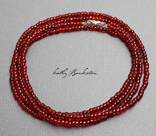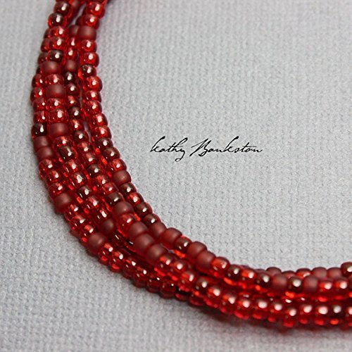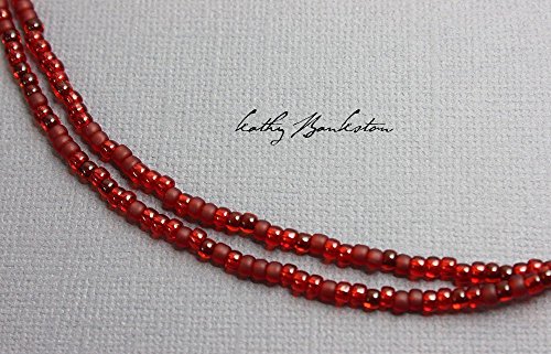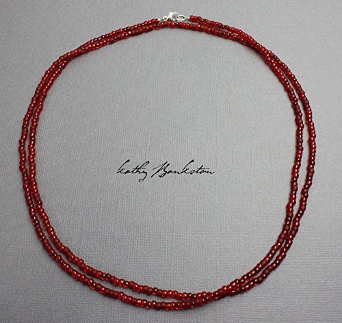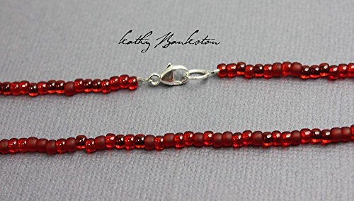 -. Title : Ruby Red Seed Bead Necklace, Red Beaded Single Strand Necklace