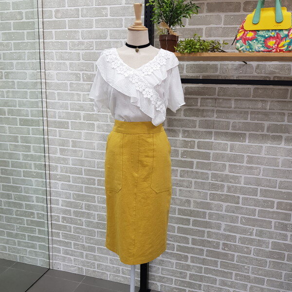 적당한 길이감과 뒷쪽에 트임이 있어 힙과 다리등 체형을 보완해주며 슬림해보여요