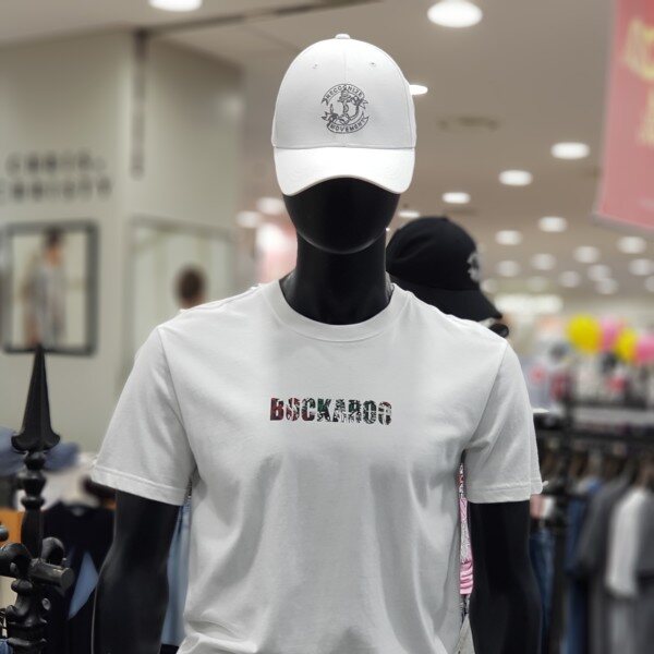 버커루 유니 기본 플라워로그 라운드 반팔티셔츠입니다.