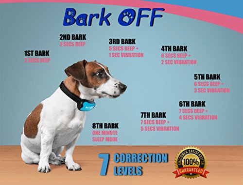 Product Description Having trouble teaching your dog to control their bark? Teach them a new trick.Looking for a humane way to train your dog without shock. Here at Bark we have the solution to your problem. Our bark collars send out a series of tones and vibrations. There are seven levels of of training and sensitivities for every dog 10 to 130 lbs. Water resistant so you can use in any weather. We give our loyal customers a 100% guarantee. I have tried the collar myself and now I don't BARK!!! So what are you waiting for? Buy one for yourself and one for a family member or the neighbor with he noisy dog now!! Click on the "add to cart" button while supplies last!! 0